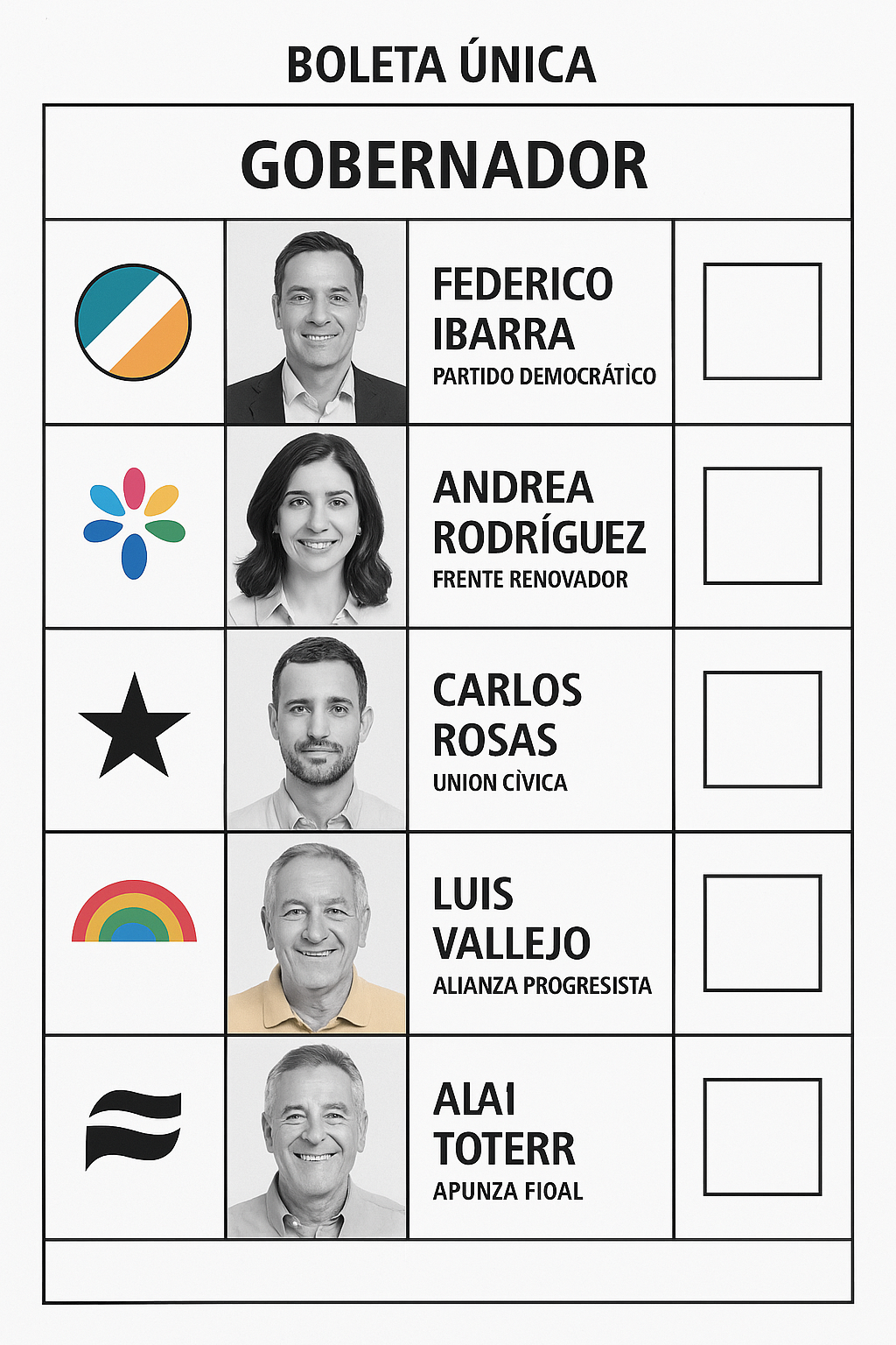 El proyecto establece que la Boleta Única será un documento impreso en papel que incluirá los nombres, símbolos y fotografías de los candidatos, así como espacios diferenciados para las distintas categorías electivas. También plantea que cada categoría de cargos electivos tendrá una Boleta Única específica con fotografías para candidatos a cargos ejecutivos (Gobernador, Vicegobernador e Intendentes). En cada mesa electoral se dispondría de una urna diferenciada para cada categoría